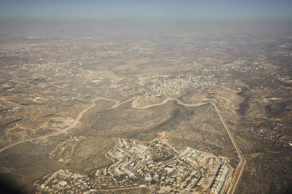 Luftfoto over området, hvor man kan se murene, der blev bygget for at afgrænse Israel fra Vestbredden.