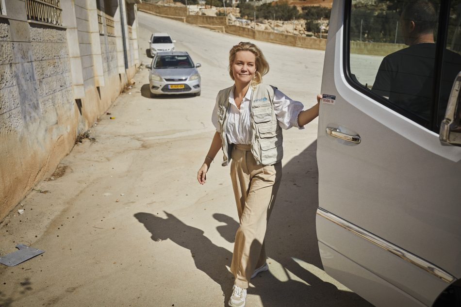 ”Det er mit arbejde både at kunne repræsentere, stå på en kæmpescene i FN-byen og tale vores sag og være nærværende i mødet med børn og mennesker, der lever under meget svære vilkår rundt om i verden. Danmark er blandt den minoritet af lande i verden, som endnu ikke anerkender staten Palæstina. Men det gør mig stolt, at vi som land går forrest, når det handler om den humanitære indsats til verdens brændpunkter,” siger hun.