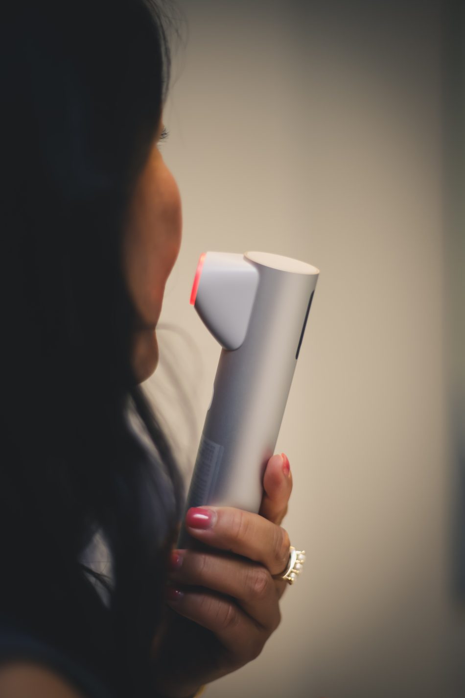 Maja Kim Madsen er netop begyndt at bruge ‘Age-R Hi Focus Shot’-devicet fra Medicube, som stimulerer kollagendannelsen ned i de dybere hudlag. Hun glæder sig til at se effekten efter nogle ugers brug.