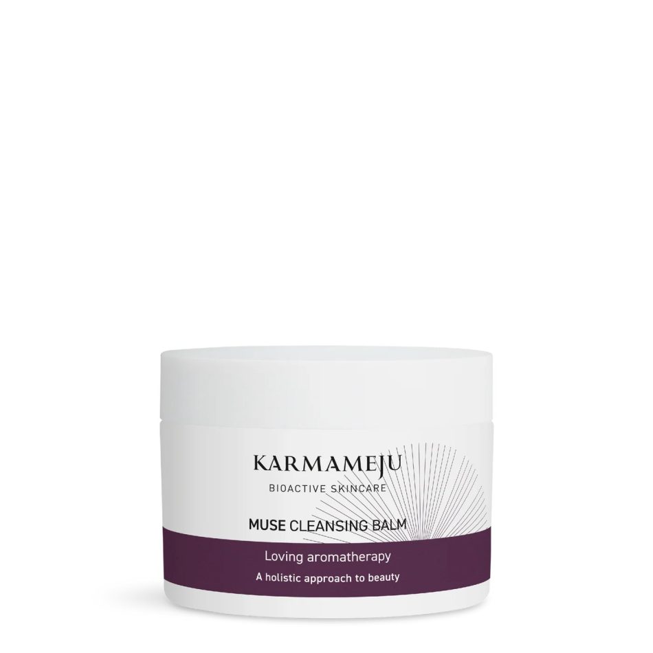 VidunderingrediensenA-vitamin, der dokumenteret kan forbedre hudens struktur, reducere fine linjer og solskader,er sammen med bl.a. moringa- og hybenolie (kendt for deres høje indhold af antioxidanter), kernen i Karmamejusrensebalm. Den olierede gel, bliver som flere af de andre, først til en olie og siden til mælk efter kontakt med vand. Den renser, blødgører, hydrer og sikrer elasticiteten, mens duften rose, jasmin og sandeltræ beroliger huden.