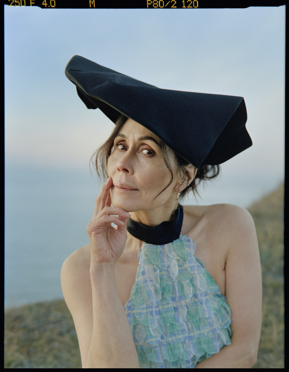 Den indbyggede udestue med sit terrazzogulv, åbne pejs og glasbetonvæg byder på generøst 60’er-æstetik. Stenbordet i forgrunden er ‘Monolite’ af Studio Persia for Thorsberg Stenhuggeri. Den høje lysestage er Tom Dixon.