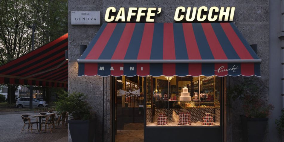 Modehuset Marni overtager de næste tre måneder (20. april til og med 15. juli) en af Milanos ikoniske cafeér, Pasticceria Cucchi, hvor de sammen med RedDuo Studio har præget alt fra sukkerposer og medarbejdernes uniformer til kaffekopper og tallerkener på cafeén i et grafisk formsprog, der imiterer Marnis univers med legende, stribet og prikket udseende. Alting vil selvfølgelig kunne købes hos Cucchi og i Marnis butik på Via Montenapoleone. En hyldest til to af Milanos traditionsbundne brands.