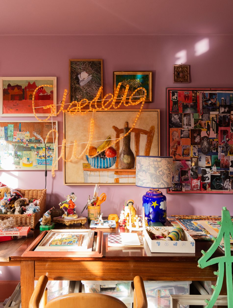 Da det yngste barn for nogle år siden flyttede hjemmefra, overvejede Helle, om det var tid til at flytte. Men hendes nyindrettede arbejdsværelse, der skummer over med Créme de la Créme à la Helle-krimskrams har givet hende hele glæden ved huset tilbage.