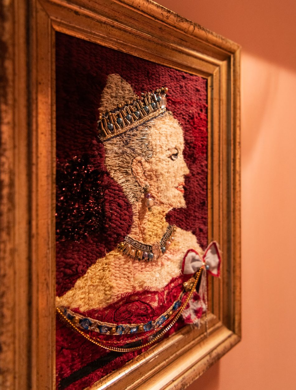 Da parrets to børn, Gilbert og Betty, stadig boede hjemme, indførte Helle herre- og dametoilet på hver sin etage. Her hænger dronning Margrethe og prins Henrik på hver deres.