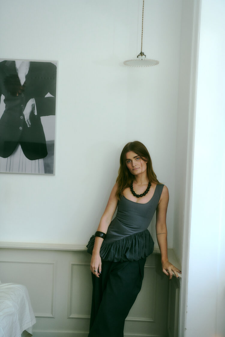 Ana Kras’ lejlighed i Paris med gulvlange gardiner, møbeldesign og kig ud over byen fra badeværelset