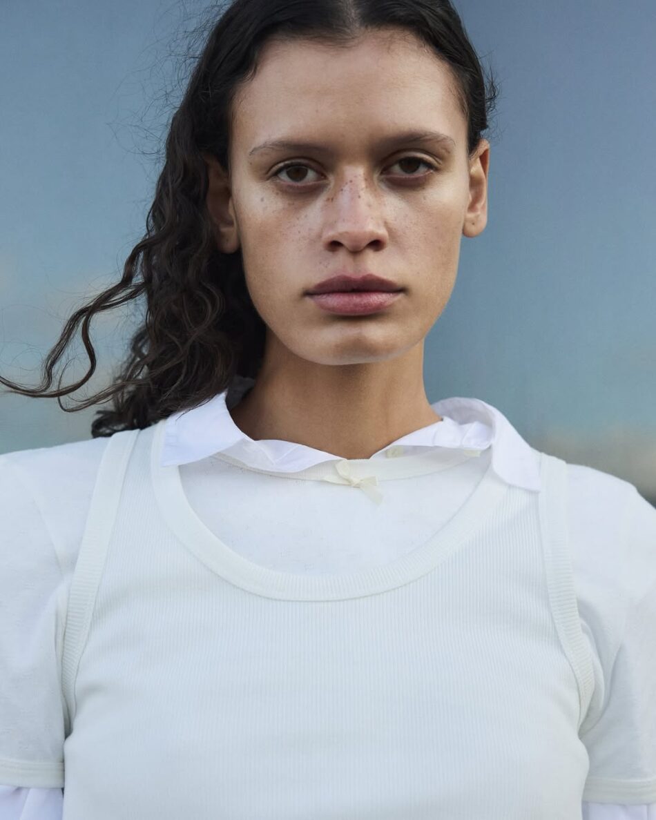 Aiayu Messhu long sleeve i hvid med sløjfe i halsen