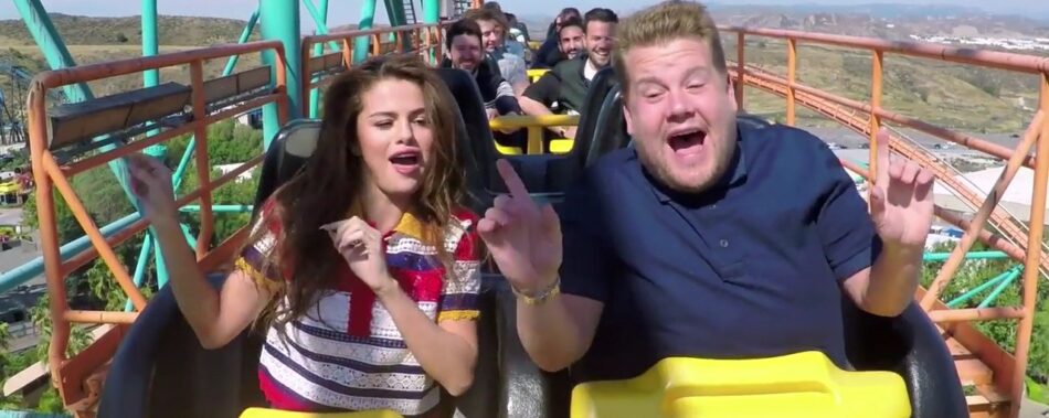 Se Selena Gomez synge karaoke i en rutschebane