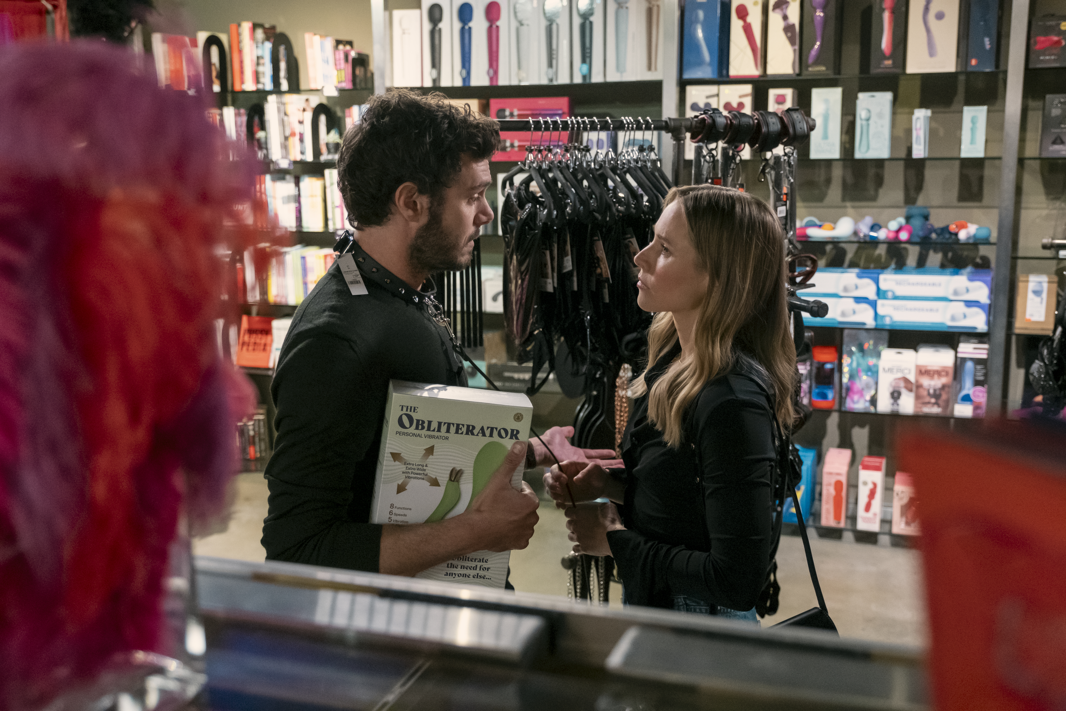 Joanne og Noah befinder sig i en af scenerne i en butik, hvor de er på udkig efter en helt bestemt vibrator – som feltarbejde til Joannes podcast.