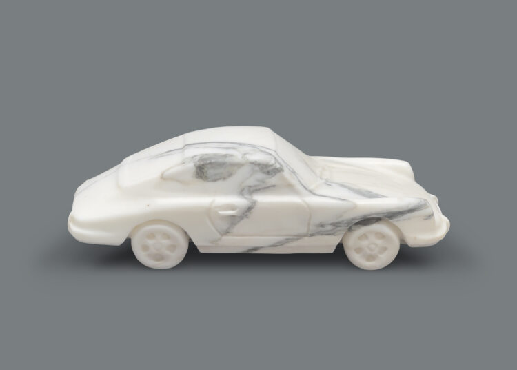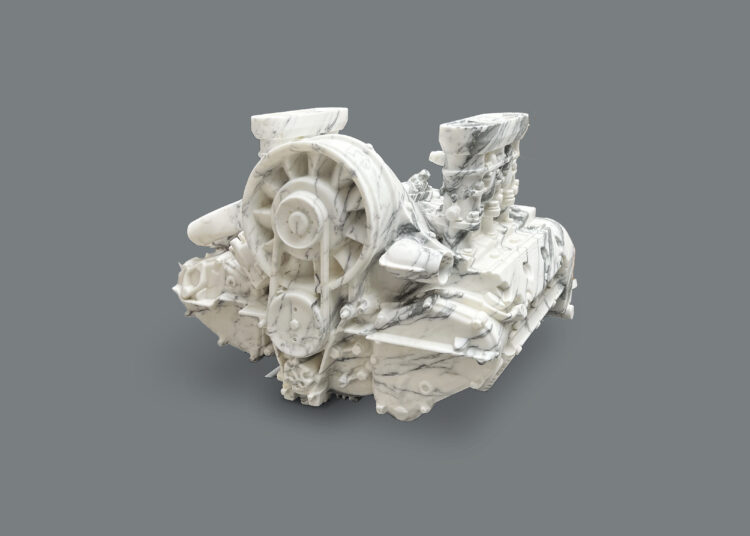 Værk: Med værkserien ‘Work in Progress’ (2024) kan du blandt andet opleve værket ‘Traffic Cone’, der udstilles i samspil med seriens øvrige skulpturer – alle i Carrara hvid, marmor. Hver i sær er de enkelte skulpturer formet som forskellige dele, man vil forbinde med en bils årlige syn på bilværkstedet, og som selvfølgelig er produceret i 1:1 størrelse.