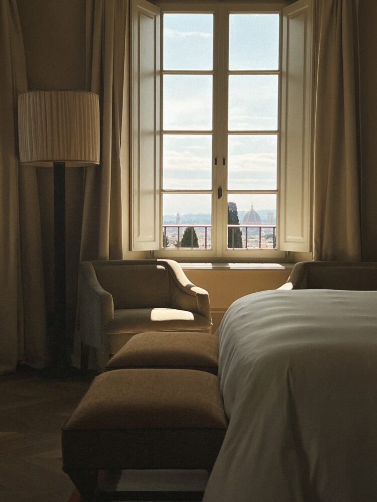 Vågn op til majestætisk morgengry og gå i seng med smukke solnedgange. Storbyhoteller i sommerperioden kommer ikke meget finere end dugfriske Collegio alla Querce, det første hotel i Europa fra amerikanske Auberge Resorts, og som navnet antyder, hylder Auberge resortfølelsen, en følelse, som sommerbesøgende vil værdsætte i den bagende toscanske sol, for hvad er mere perfekt end et helle fra det hele, en oase af en have med noget så luksuriøst som en pool? Collegio alla Querce er det bedste af to verdener: et urbant tilflugtssted kombineret med idyllen fra en toscansk landejendom, en følelse, som rammer allerede ved den cypresbeplantede alléindkørsel og fortsætter i de fire niveauer af historiske terrassehaver designet af Franchesca Watson i bedste Medici-stil. Indenfor indrammes haven og bakket-op-udsigterne af smukke, høje vinduer. Mod syd er Firenzes maleriske Centro Storico med sine arkitektoniske renæssancevidundere, og mod nord og øst er Toscanas bølgede bakker. Bag restaureringen af den historiske 1500-tals-universitetsbygning er spanske Esteva i Esteva og ArchFlorence, som sammen har skabt et design med respekt for bygningernes originale træk som de restaurerede håndmalede freskoer, træbeklædte lofter samt varme farver på vægge og i tekstiler. Lokale materialer og moderne møbler komplementerer antikviteter og originale kunstværker, og man kan næsten fornemme historien i de marmorbelagte korridorgange, hvor Italiens dygtigste elever i mere end 100 år havde deres gang på vej til biblioteket, teatret, kapellet og ikke mindst den smukke have. Værelserne parrer old-new og kommer med en forventelig luksuriøs rummelighed, hvor bjergtagende morgenudsigter nydes fra himmelsengene. Badeværelserne er klassiske med kar, der inviterer til oliven- og botanisk infuserede bade a la antikke romerske badehuse. Hvis du mod al forventning skulle føle dig klemt på plads, kan du gå all in og opgradere til en af suiterne med terrasse.
