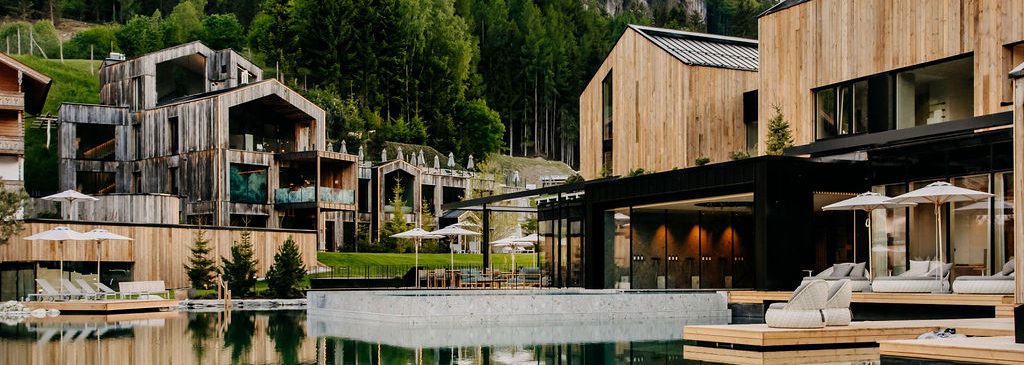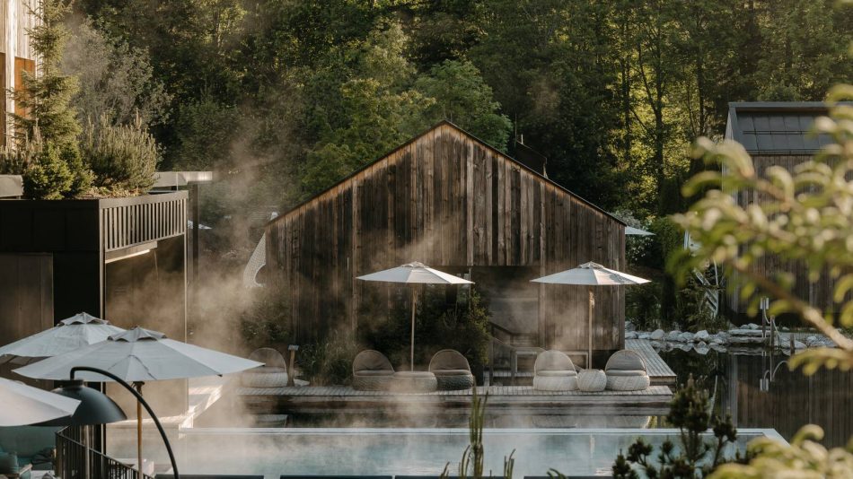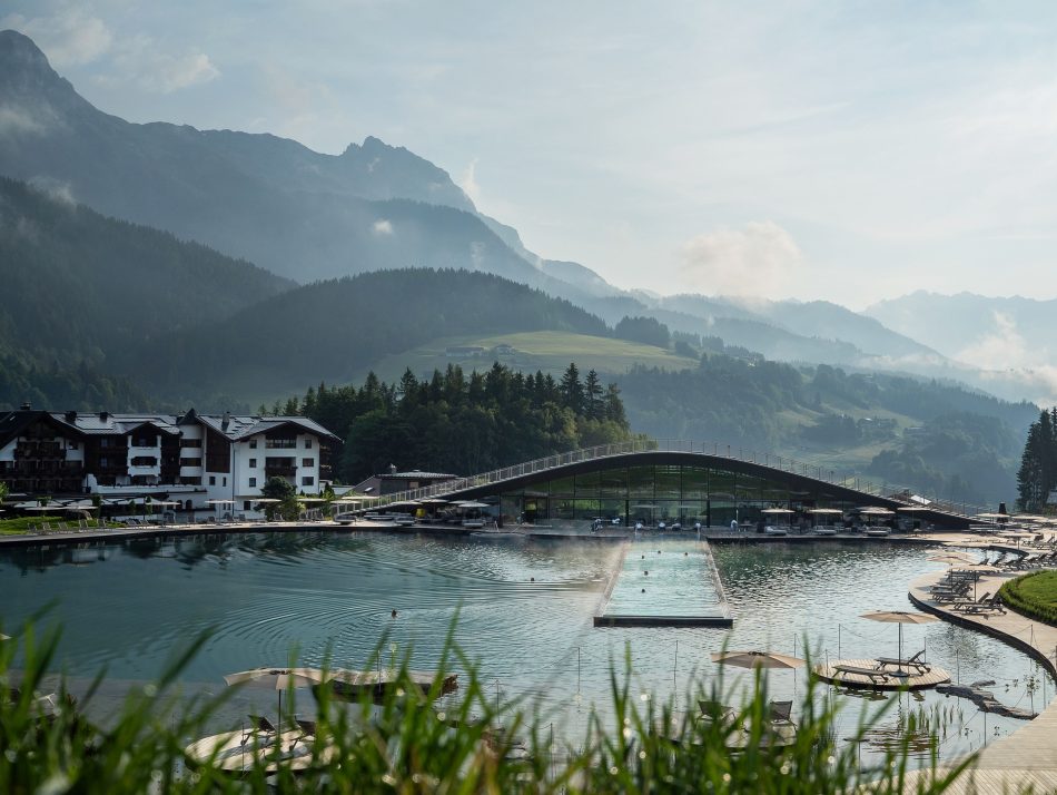 Hotellet, der drives af familien Schmuck, fangede hurtigt min opmærksomhed i min søgen efter hoteller i Leogang. Stedet formår nemlig på mest balancerede vis at kombinere moderne design med naturens egne materialer i hotellets hovedbygninger, der omkredser hotellets hovedattraktion; den idylliske badesø, der skaber en rolig – og nærmest eventyrlig – atmosfære. Desuden – som det også ligger i navnet – er stedet et naturhotel, hvilket betyder at dets beliggenhed er centreret omkring uberørt natur med fokus på forbindelsen hertil samt bæredygtige valg – og derfor blender netop omgivelserne også ind i hotellets indretning og bygningsstil på fineste vis. Og ja, billederne lever bestemt op til virkeligheden.