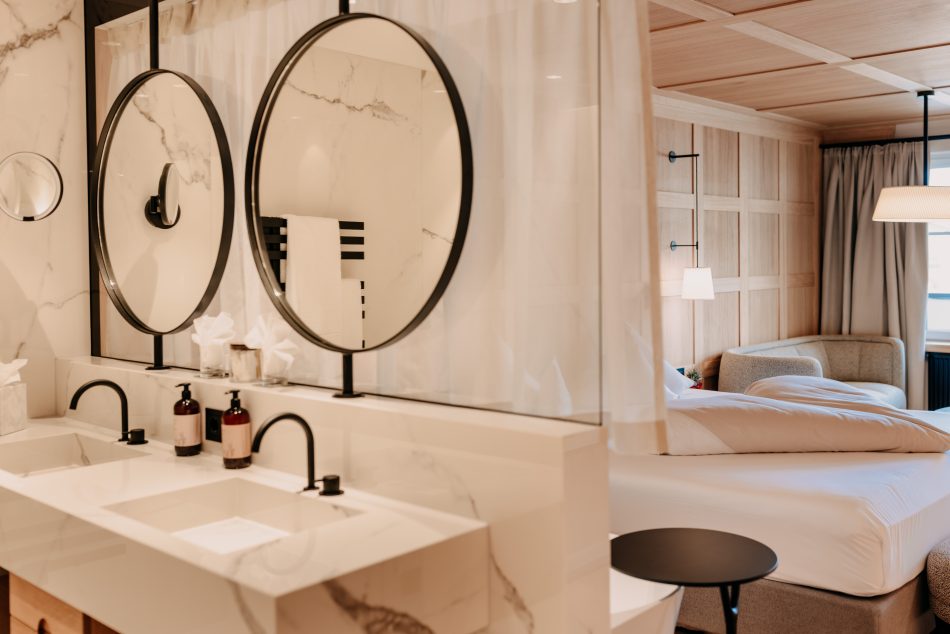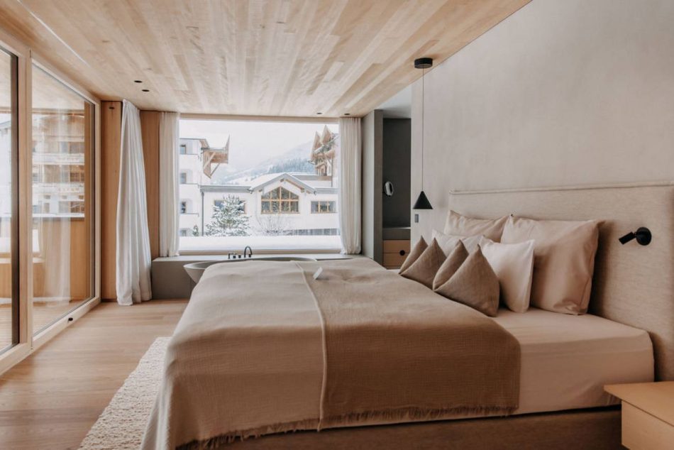 Værelserne er indrettet med respekt for den alpine tradition med smukke træværksdetaljer, charmerende, mønstrede tekstiler og nøje udvalgte detaljer som kunstværker, der skaber en varm og indbydende atmosfære – næsten, som befandt du dig i et smuk chalet i bjergene.