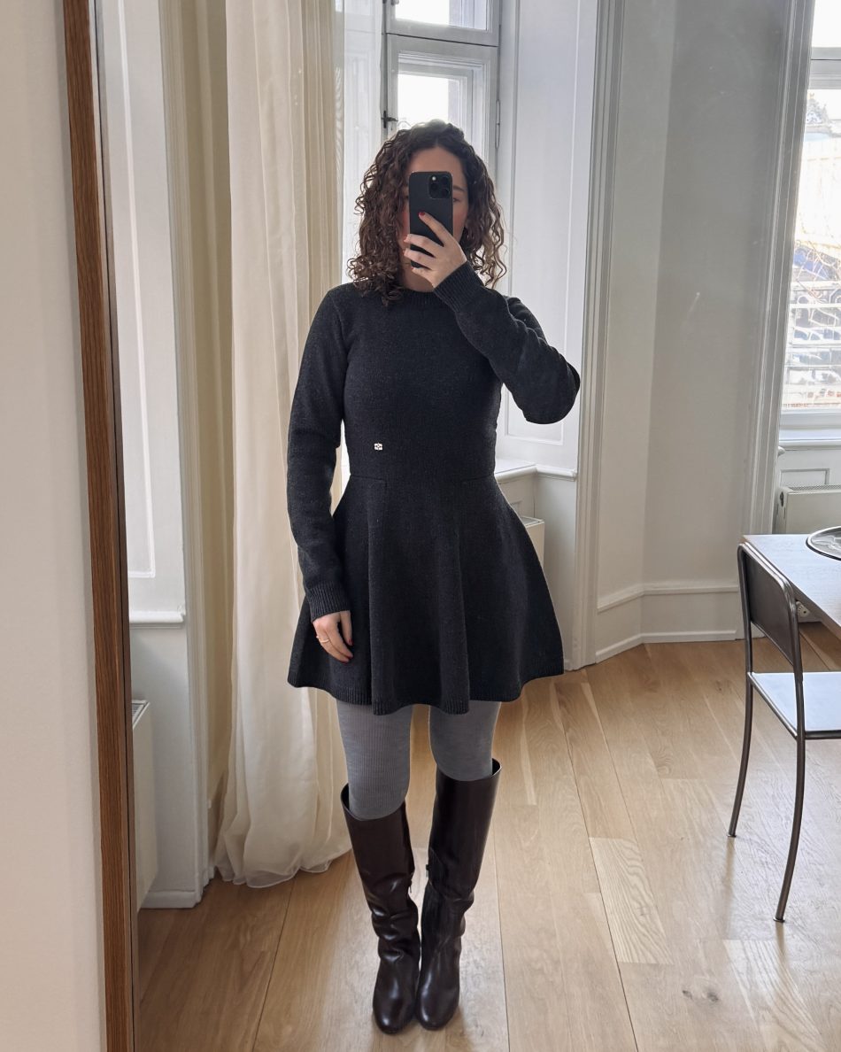 Endelig er det blevet vejr til lidt andet end jeans med lange uldleggins under, og jeg kastede mig dermed straks i denne lækre og feminine uldkjole med flatterende snit.