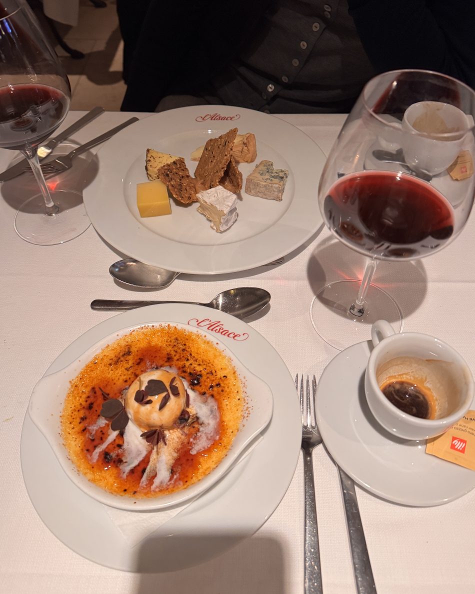 Jeg har også (og langt om længe) lagt vejen forbi klassikeren l'Alsace i Ny Østergade, og også her sørgede min sultne veninde og jeg for plads til dessert. Osteanretning og karamelliseret creme brulée med bagte blommer & vaniljeis. Førstnævnte går man aldrig galt i byen med, men særligt sidstnævnte vil jeg gerne lægge et godt ord ind for.
