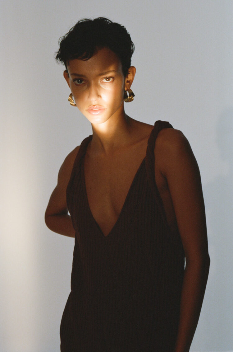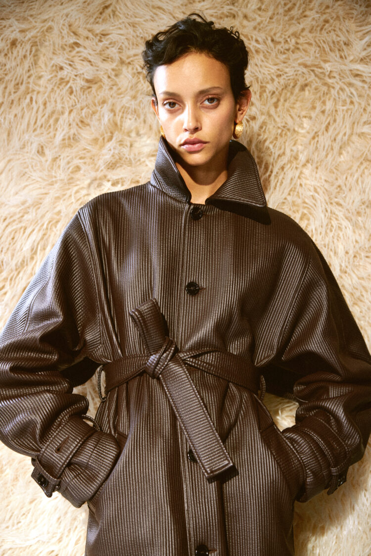 Kollektionen hedder ‘Rhythm’. Vi tænkte på en rytme, og at der er en rytme i alt. En rytme kan øges, motivere én til handling eller få én til at mærke noget, eller den kan falde, gøre tempoet langsommere og sætte én i en roligere, mere meditativ tilstand. Med AW24-kollektionen ønskede vi at udforske rytmens forskelle og muligheder. I tøjet oversættes det til intense, teksturerede stoffer i dristige farver ved siden af blødere, mere stille tøj i naturlige farver.