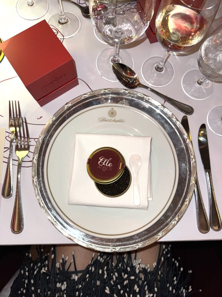 Forretten var en ‘Caviar en Surprise’ – en dåse caviar med et surprise-lag af hummer og jordskokke-panna cotta, selvfølgelig iført et særligt ELLE Awards-label til anledningen.