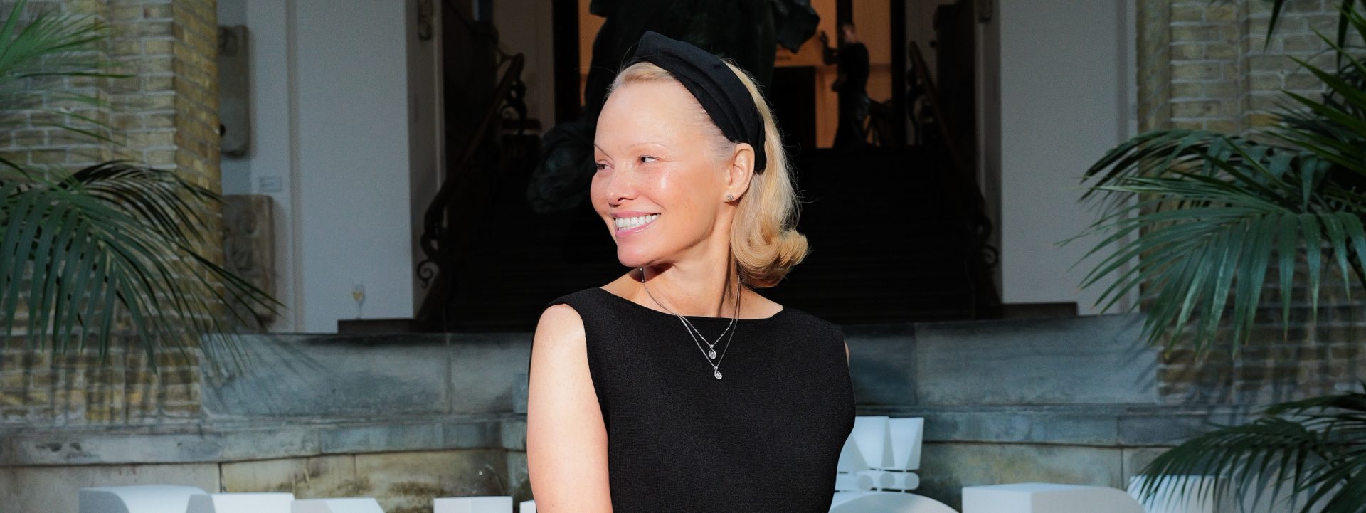 Ambassadør Pamela Anderson, da hun deltog i Pandoras middag under Københavns modeuge på Glyptoteket i København.