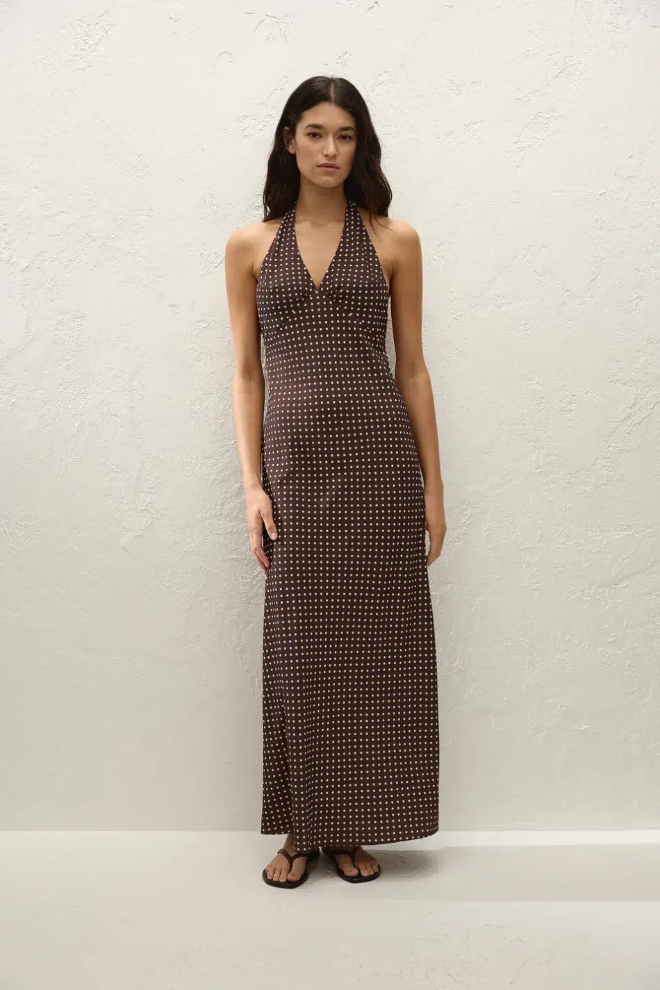 Halterneck kjole i brun med prikker, Faithfull The Brand, 1.300 kr.