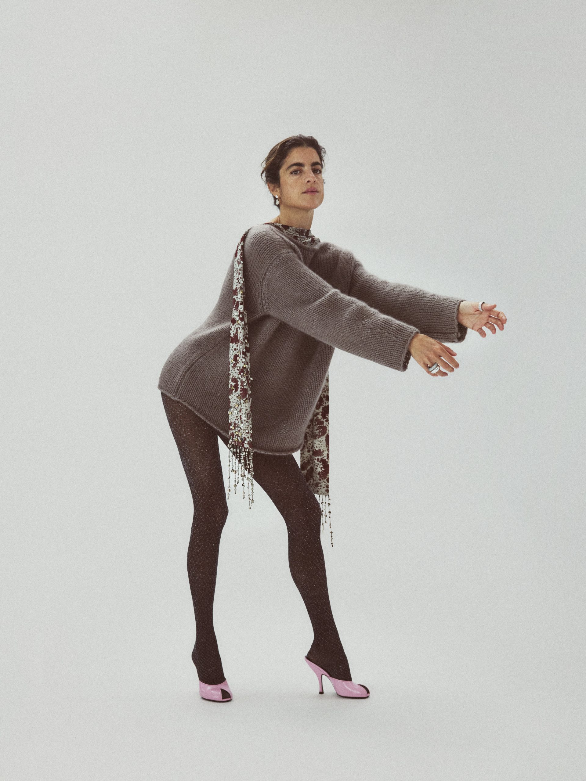 Da jeg arbejdede med designet, fik jeg idéen om, at strømpebukser kunne være omdrejningspunktet i et outfit – eller det element, der skaber hele looket. Hvilke slags strømpebukser ville fuldstændig kunne forvandle et look? Eller hvilke ville man starte med og så bygge resten af outfittet op omkring? Hvert par er gennemsyret af denne idé om at have stor gennemslagskraft.
