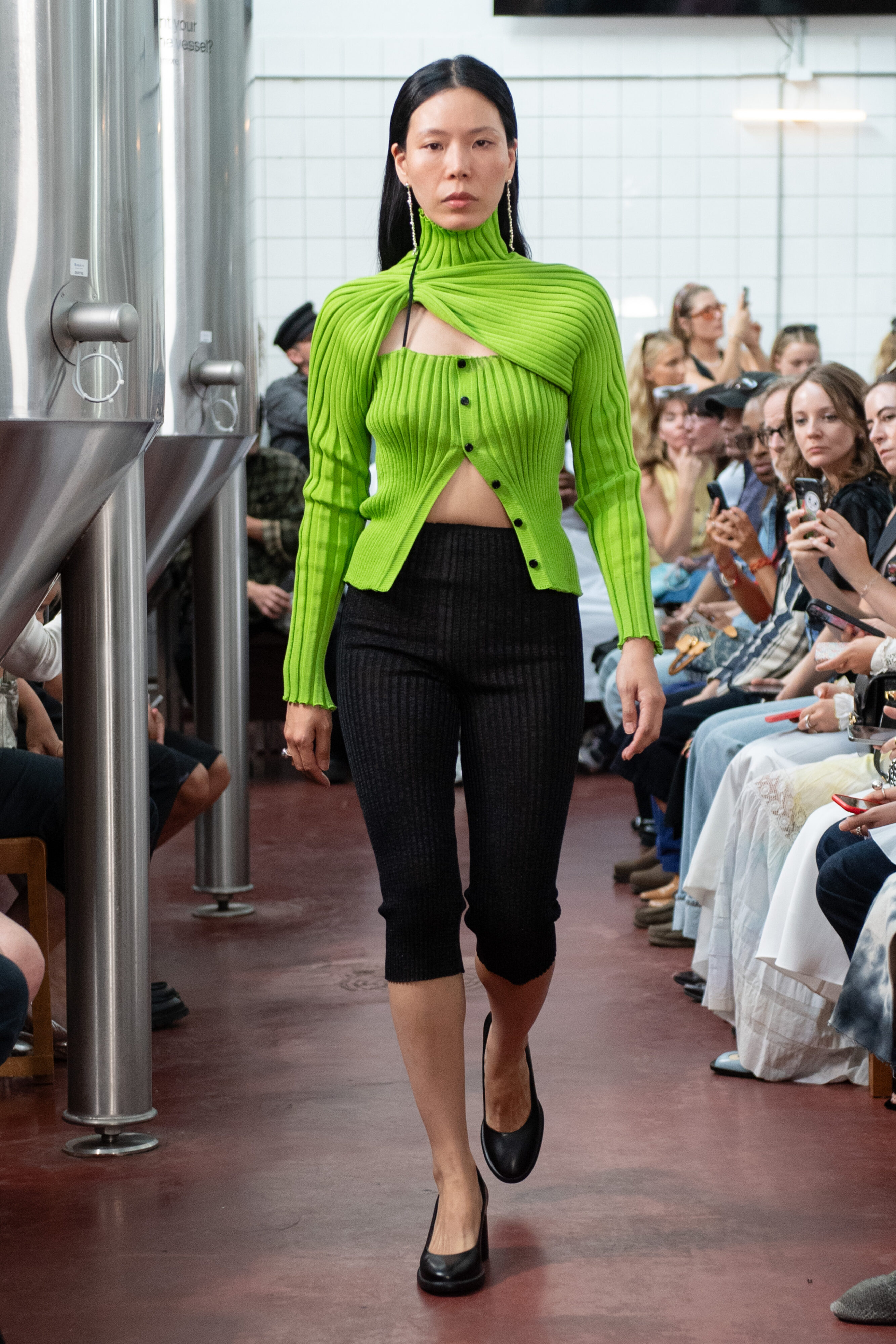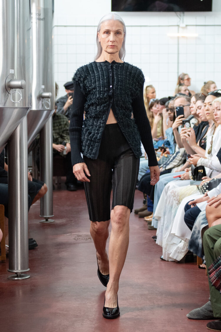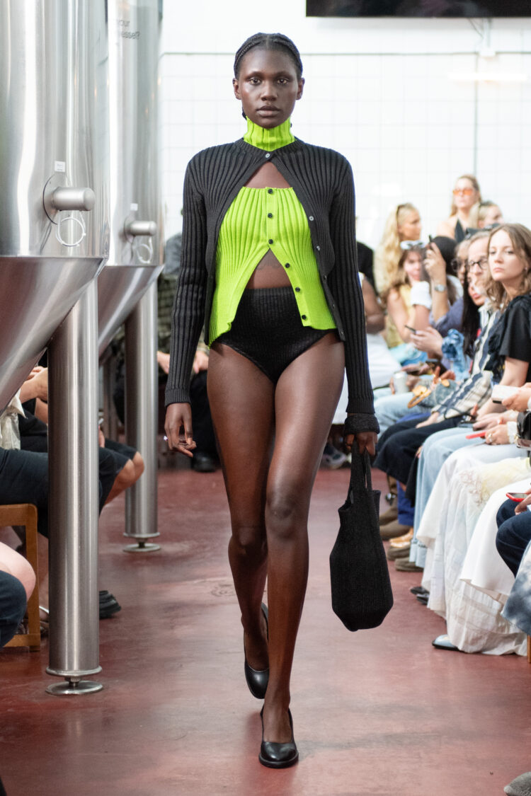 I tråd med sommerens brat summer-energi, som også er blevet uundgåeligt synonym med den limegrønne farve takket være sangeringen Charlie XCXs nye album (med limegrønt cover) ‘Brat’, som har sat både termen og farven på programmet denne sommer, var det nemlig limegrønt-iklædte modeller, der trådte frem på runwayen i bryghuset Åben i Kødbyen, da Amalie Røge Hove leverede et stærkt comeback med sin SS25-kollektion, efter hun sidste år måtte melde om konkursbegæring, hvorfor hun heller ikke var at spore på vinterens modeugekalender. Men det skulle heldigvis ikke vare længe, før vi atter kunne glæde os til hendes præsentation med sit brand A. Roge Hove.
