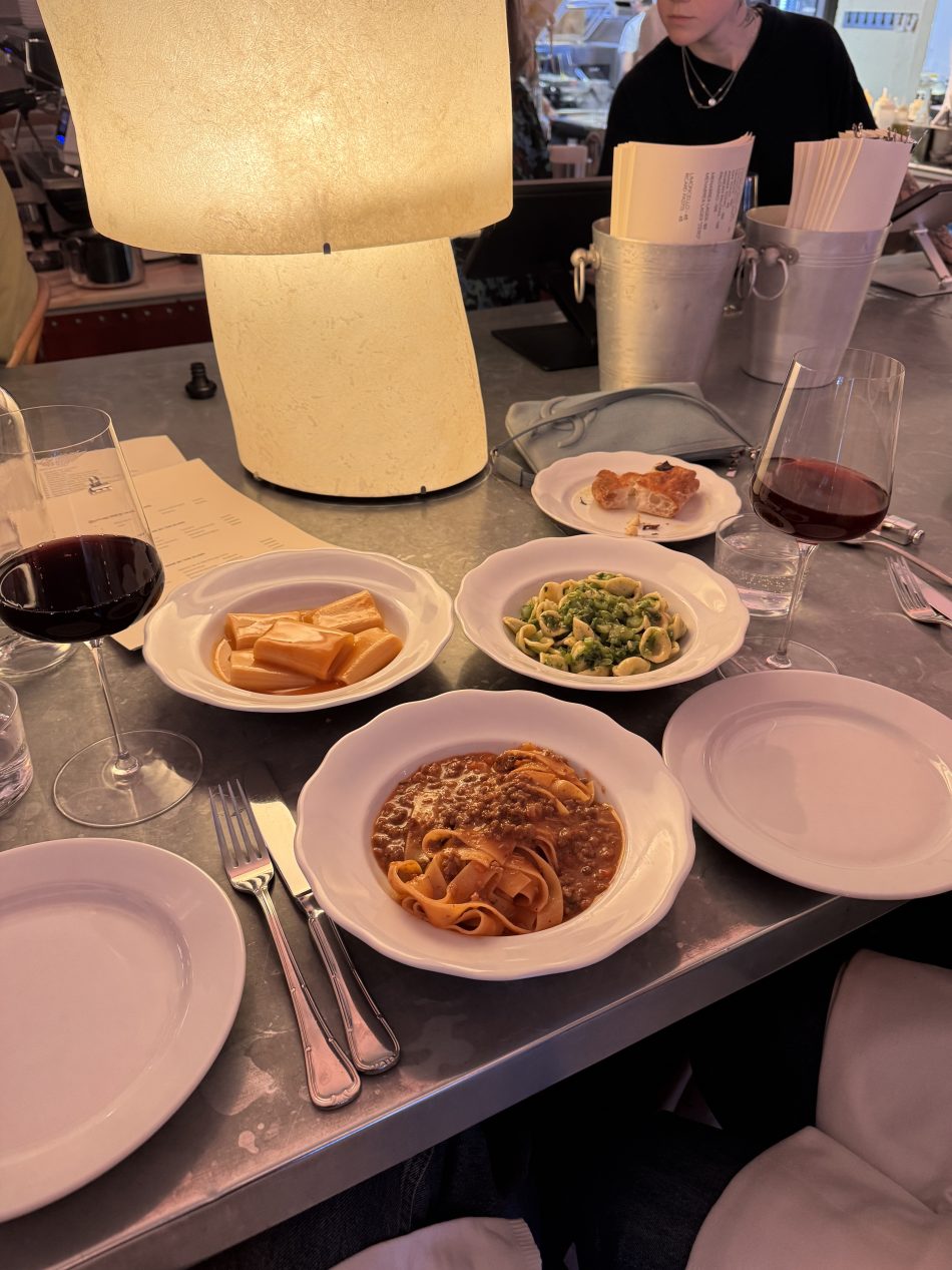 At sidde i baren på Bar Amore en fredag med 1 stk. veninde, 2 glas rødvin og 3 pastaretter ligger højt på min liste over ting, jeg godt gider. Jeg var forbi i sidste uge, og valget faldt på paccheri i jomfruhummerbisque, tagliatelle med dagens ragu og den grønne, som jeg ikke husker nærmere, end at det var noget med ærter. De to første var mine favoritter – for slet ikke at tale om dagens chokolade-gelato!