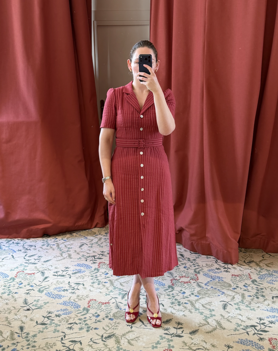 Jeg har tidligere gjort mig nogle virkelig gode køb hos den franske influencer Jeanne Damas' brand Rouje i Paris, og for nylig kom denne røde sag med mig hjem. Det er for koldt endnu, men snart vil jeg hoppe i den med bare ben og en lille hæl. Jeg tænker, den vil gøre sig godt til en festlig lejlighed.