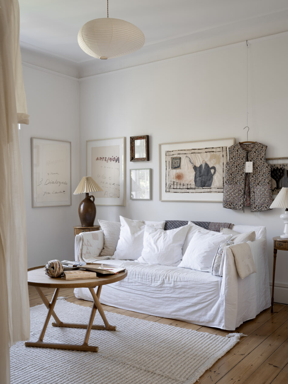 I ELLE Decoration-sektionen kan du komme med indenfor i kunstner og designer Line Sanders villalejlighed, hvor det nærmest føles som at træde ind i en skattekiste af eventyrlige fortællinger, skabt af vintagetekstiler fra hele verden, bånd, patchwork, nål og tråd. I hjemmet i Hellerup har hun indrettet sig med et stort arbejdsbord, klassiske møbler og quiltede tæpper på væggene, der vidner om en håndværksmæssig tradition, hun selv er en del af.