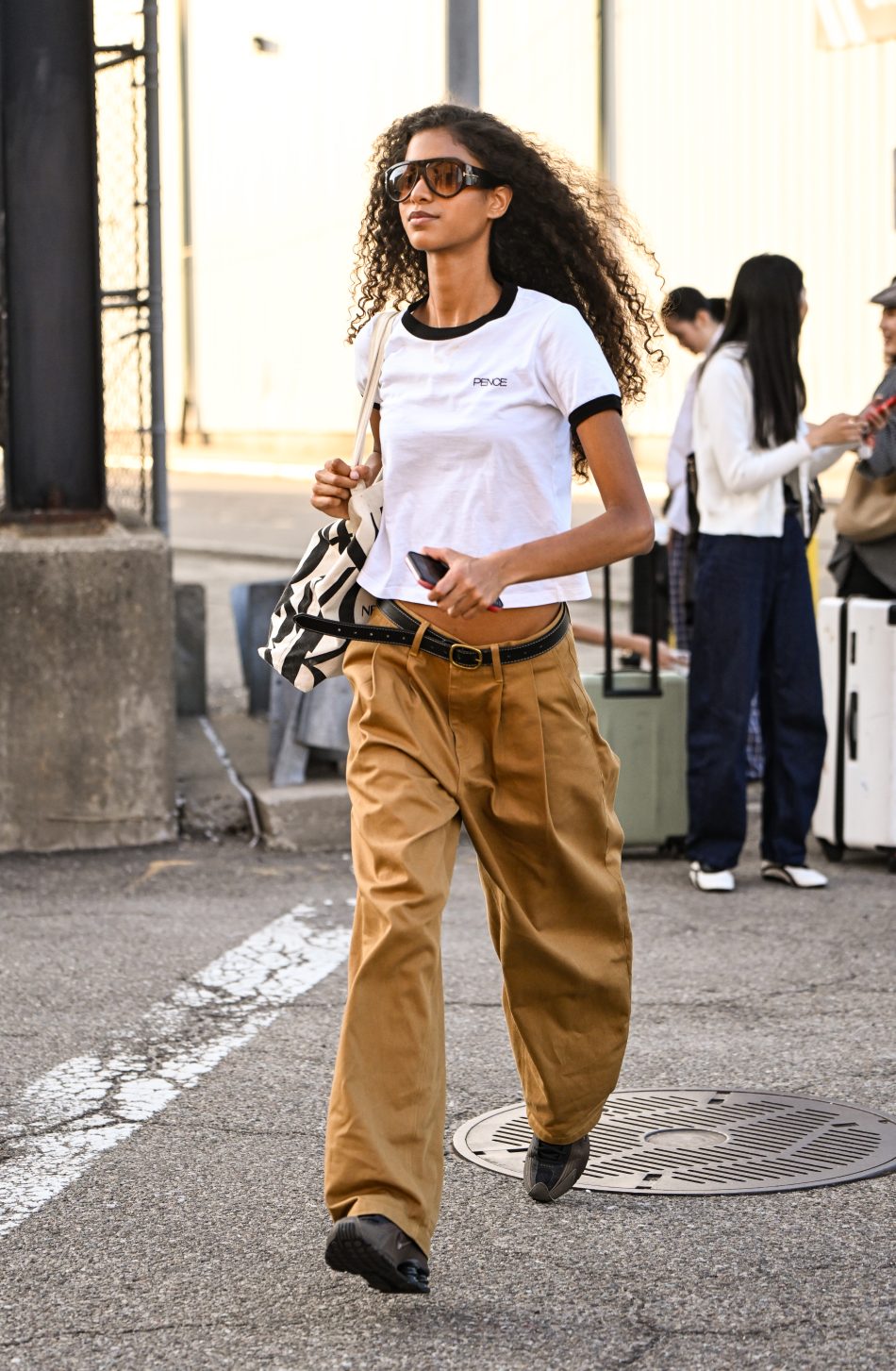 Cargo-bukserne kan ligeledes styles i et mere afslappet look som her, hvor de sidder lavt på hoften og er parret med en T-shirt og et par sneakers.