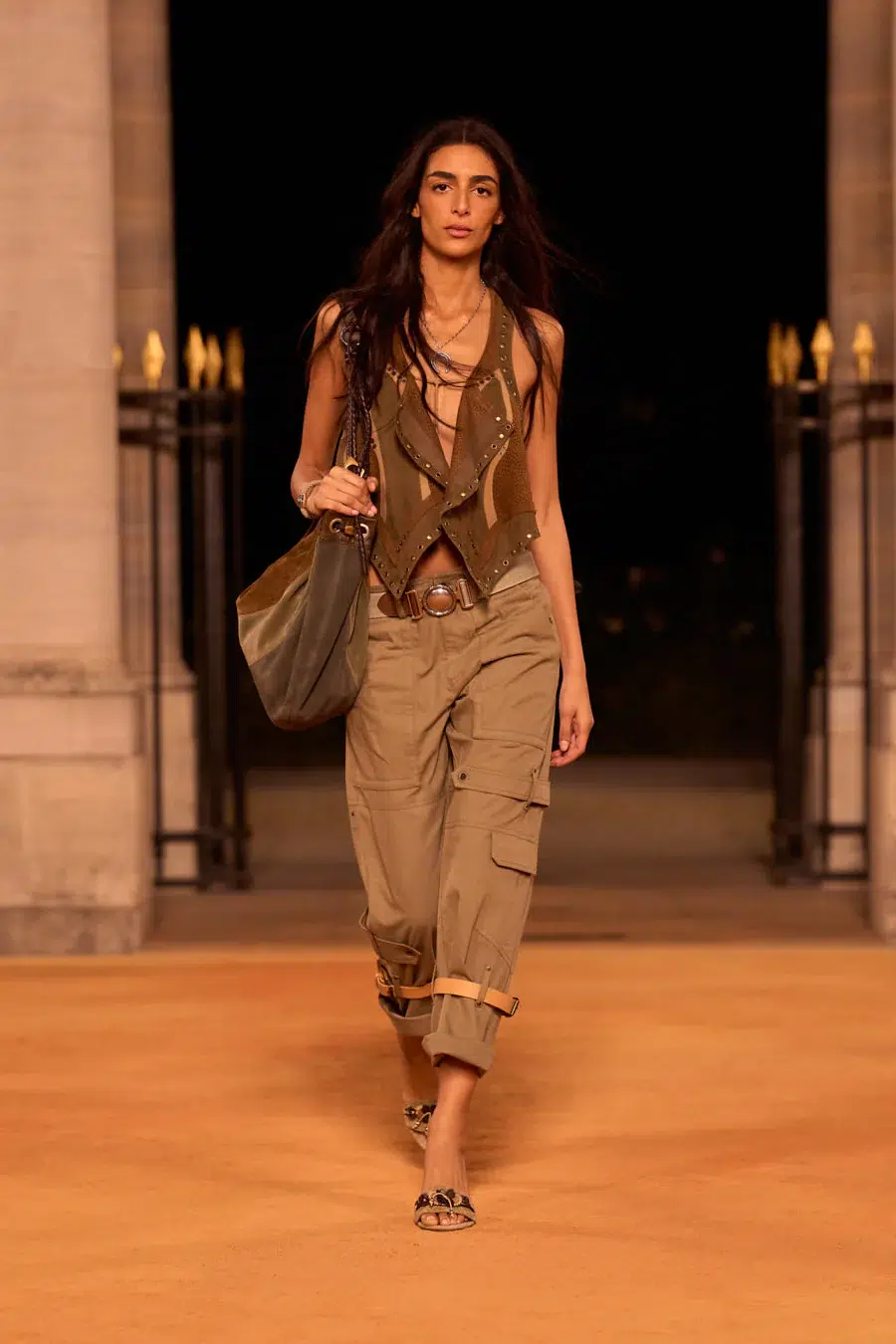 Med sit boho-inspirerede univers er det måske ikke den største overraskelse, at Isabel Marant var en af de første til at hoppe med på de løse cargo-inspirerede bukser på runwayen, men i den mere overraskende ende finder man modehuse som Balmain og Brandon Maxwell, der i forbindelse med SS26-modeugerne præsenterede deres take på trenden.