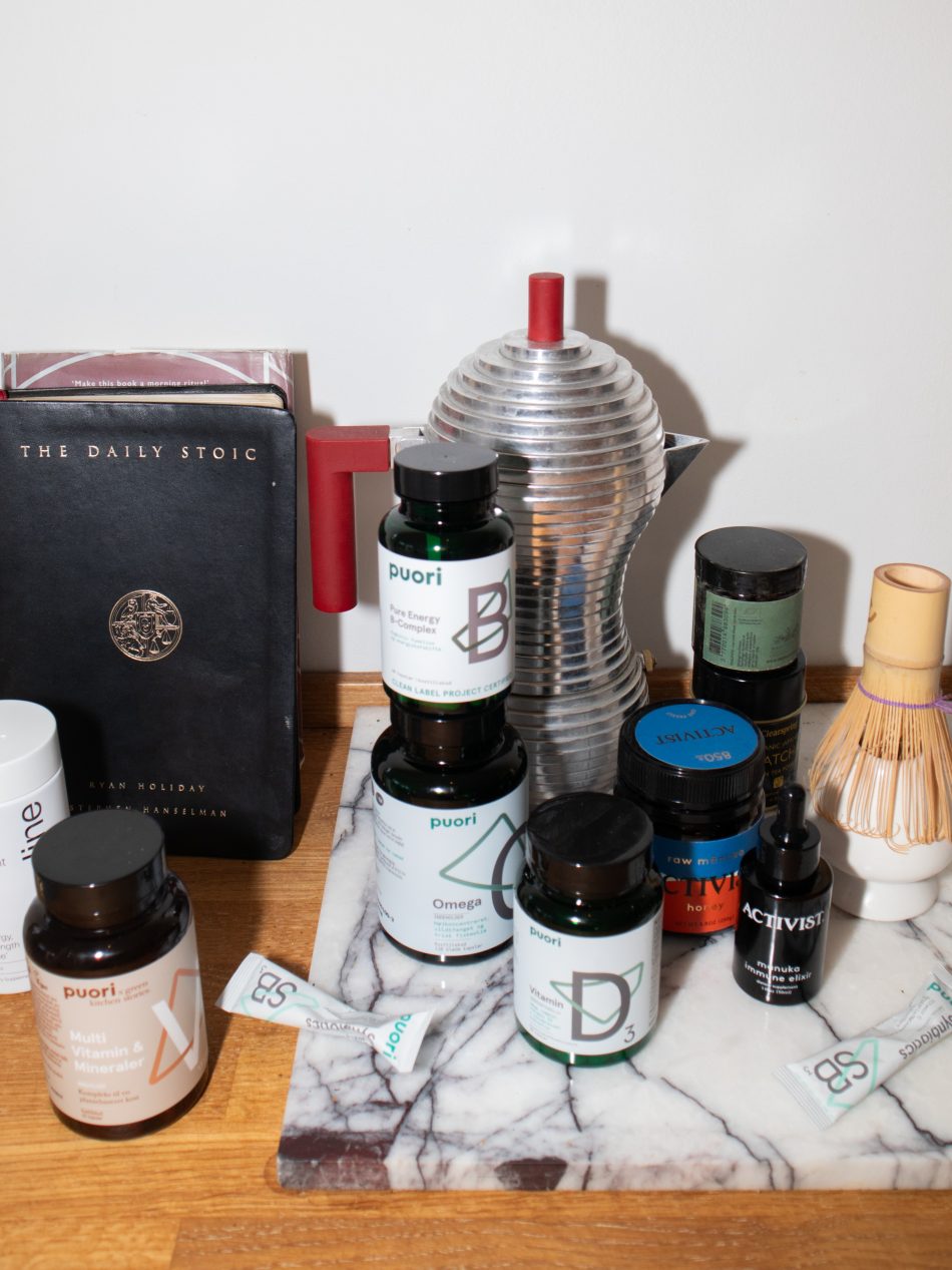 Ja, jeg tager B vitamin 1-2 gange om ugen, og hver morgen tager jeg D-vitamin, multivitamin, fiskeolie og SB3 (pre- og probiotika) fra Puori. Derudover laver jeg en drik med vand, C-vitamin, kollagen og kreatin. Jeg tilføjer også proteinpulver i mine smoothies, og jeg slutter hver dag af med fire magnesium tabletter, alt sammen fra Puori. Puori er tredjepartstestet af uafhængige laboratorier, og hvert enkelt produktparti testes for mere end 200 uønskede stoffer, herunder tungmetaller og pesticider.