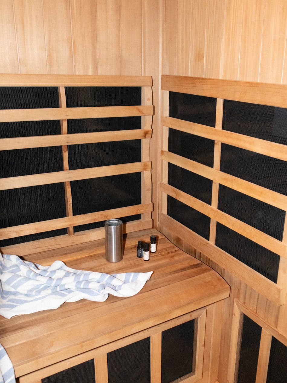 I de kolde måneder har Anaïs og hendes mand ofte en saunadate om aftenen i deres infrarøde sauna 'Clearlight Sanctuary 2' fra Clearlight med dertilhørende æteriske olier.