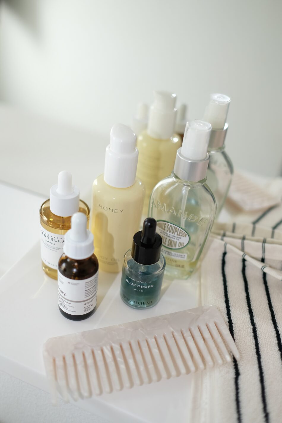 ‘Alpha Arbutin 2%’ fra The Ordinary og Raaw Alchemys ‘Blue Drops’ er en fast del af morgenrutinen.