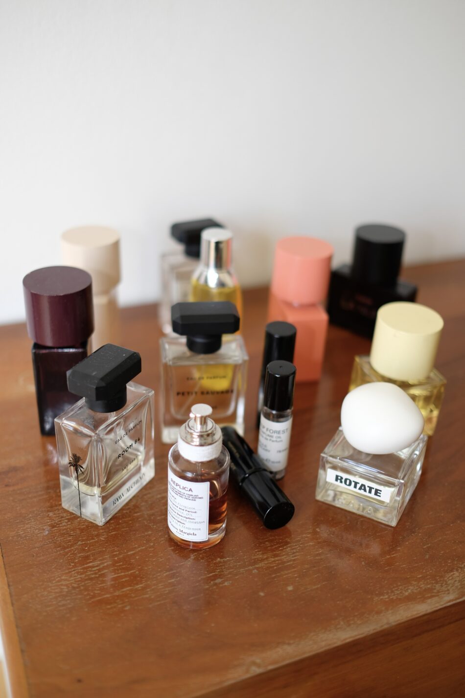 Parfume. Aldrig. Jeg går ikke ud ad døren uden. Nogle gange én. Nogle gange to. Jeg lægger dem lagvis som stemninger.